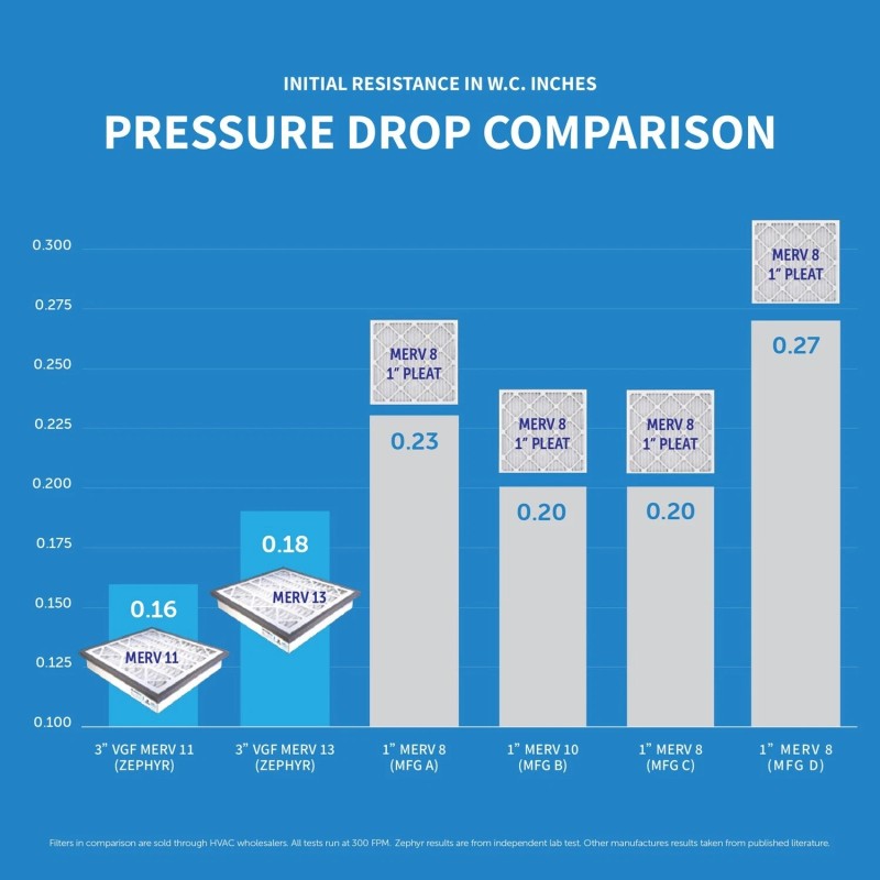 • Lower static pressure drop than 1" MERV 8 filters. Fits most 1" Return Air Grilles without modification.