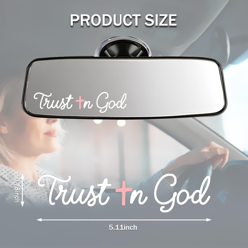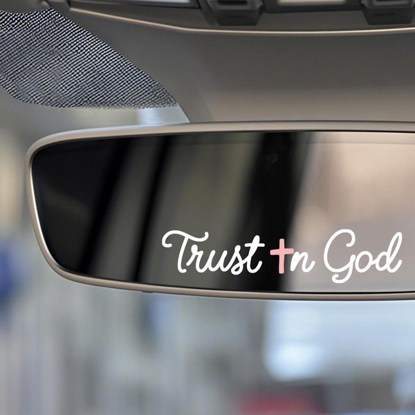 Zephyraxis 3PCS Trust in God Rearview Mirror Sticker, God is Greater Than The Highs and lows Vinyl Rear View car Mirror Decal for Women, Men,Christian Jesus Cross Car Accessories (White)