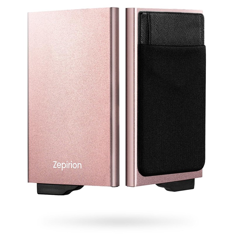 zepirion Quick Wallet 2 Credit Card Case, Optimized for Cashless, Anti-Skimming, Magnetic Protection, Sliding, Slim, Aluminum, Men's, Women's,, rose gold