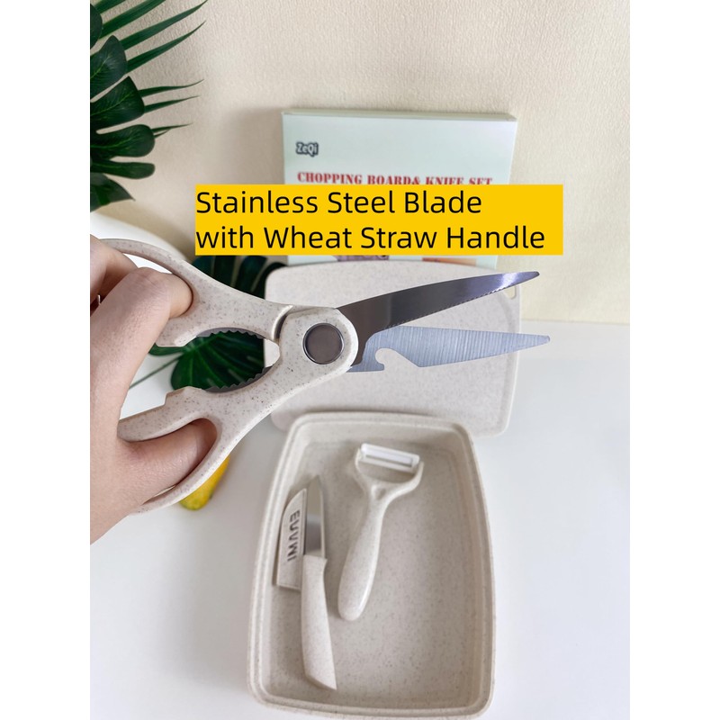 - [5 Practical Kitchen Utensils in 1 Set] This 5-in-1 kitchen gadget set includes a Cutting Board, a pair of Kitchen Scissors, a Vege Fruit, a Fruit Knife and a Serving Tray. This set is small and lightweight, including practical kitchen utensils. It is perfect for taking on outdoor trips, camping, bringing to the office for simple lunch preparations, or using in dorms for basic food preparation. Packaged in a beautiful box, it also makes a great gift for friends and family.