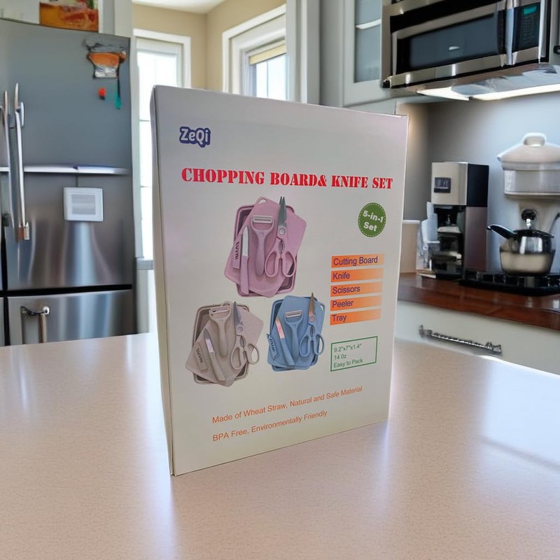 ZeQi 5-in-1 Cutting Board, Knife, Peeler, Scissors and Tray Set Outdoor, Dorms/Small Cutting Boards/BPA Free/Dishwasher Safe/Kitchen Utensils-1
