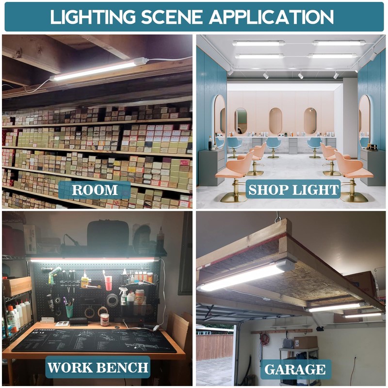 - ✅Linkable & Easy Installation-- This LED Tube Lights Comes with on/off switch power cord, plug and play, no extra wiring required. You can connect Max 18 led shop lights in a series by the short connector or 19.6 inches extension cord(included in the package).