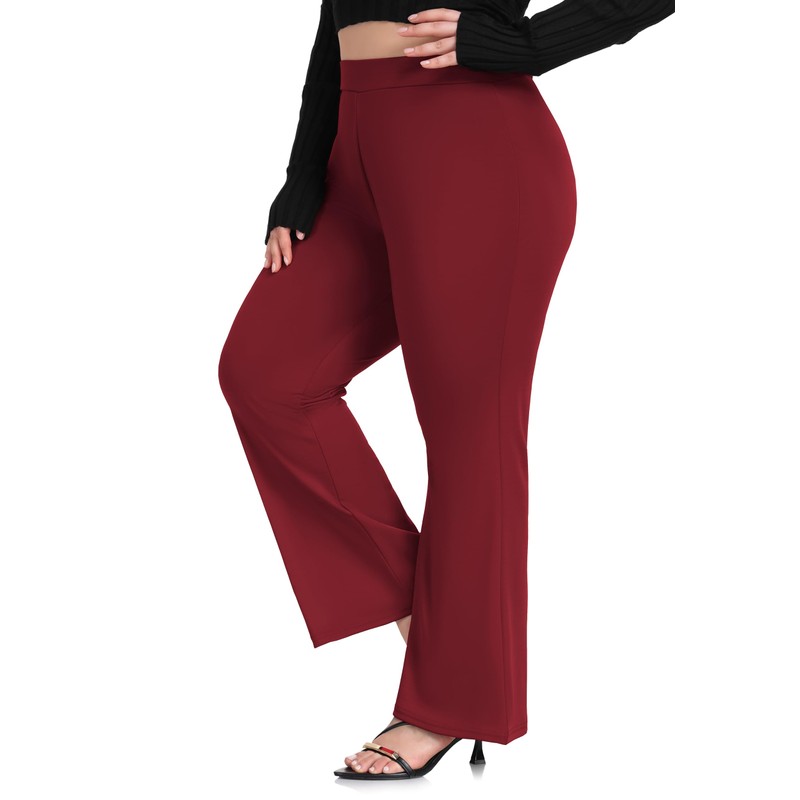 ZERDOCEAN Women's Plus Size Flare Leggings Pants Work Business Casual Stretch Pull On Office Dressy Pants Wine Red 4X