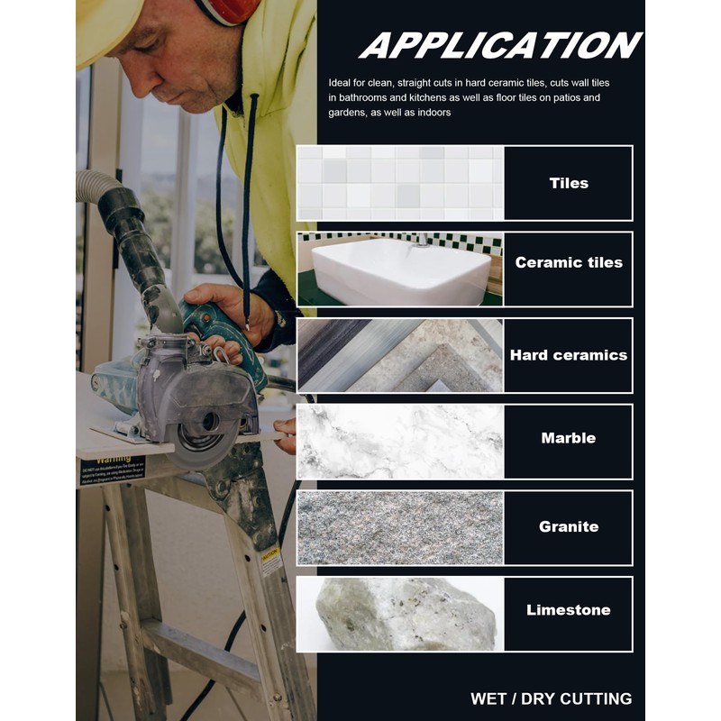 • 4 1/2" Diamond tile blade; Suitable for both dry and wet use.