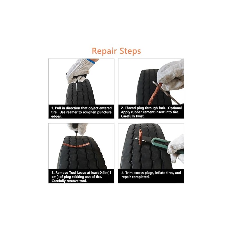 • 【SPECIFICATION】: 1/4" x 4" tire repair strings. brown color, effective and practical for most radial tire emergency repairs