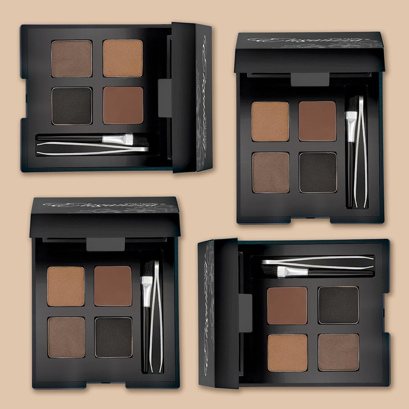 - A whole set to define your eyebrows as a professional, includes: a pigmented wax, 3 shades of shadows, templates and mini tweezers for plucking.