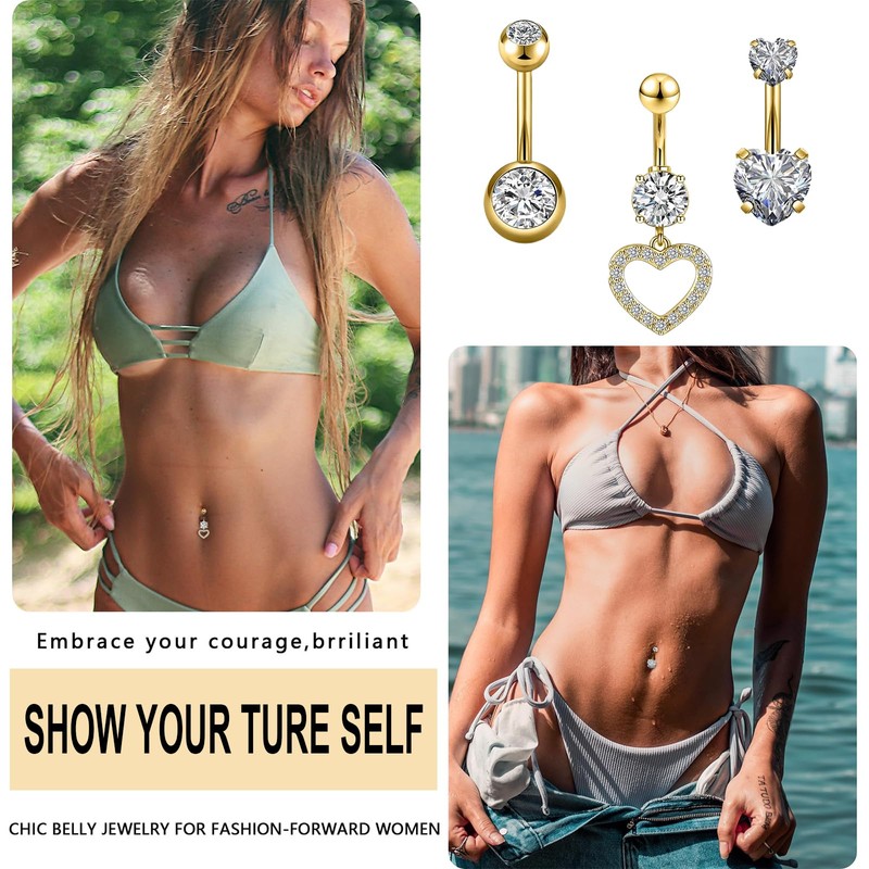 - Elegant design: The gold finish adds a touch of luxury to each belly button piercing