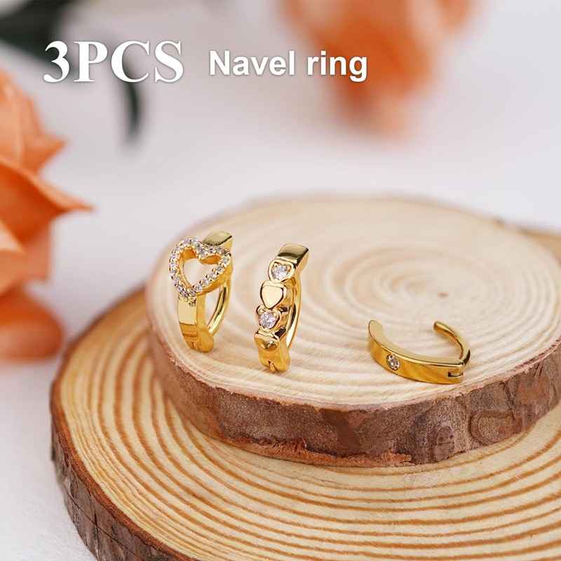 Zernblend Pack of 3 14G belly button rings, 316L gold belly button rings, belly button piercing, gold