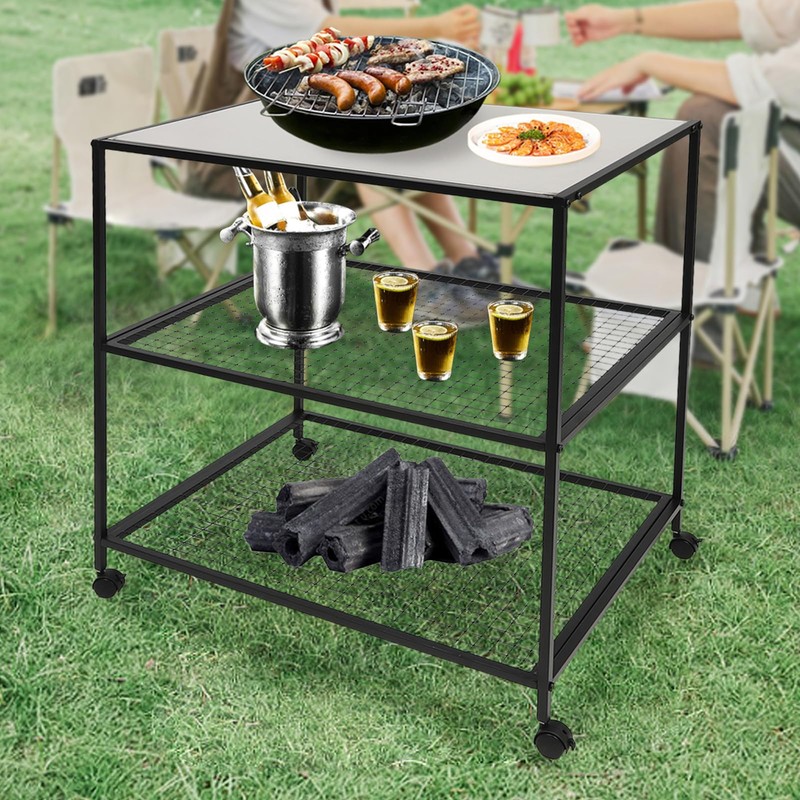 - 【Strong Load-bearing】The thickened steel tube, welded and polished processes make the product more stable with a weight capacity of up to 44.04lbs, you can rest assured to place barbecue supplies or kitchen equipment without worrying about collapsing.