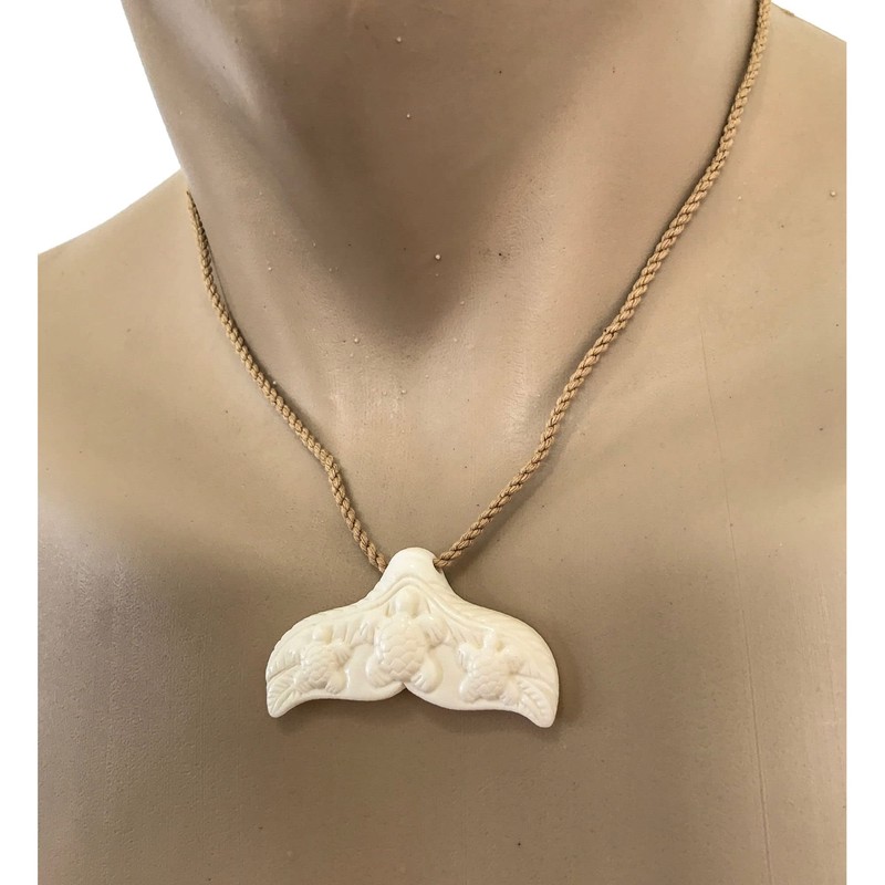 - Hawaiian jewelry hand carved buffalo bone whale tail turtle pendant from Maui, Hawaii.