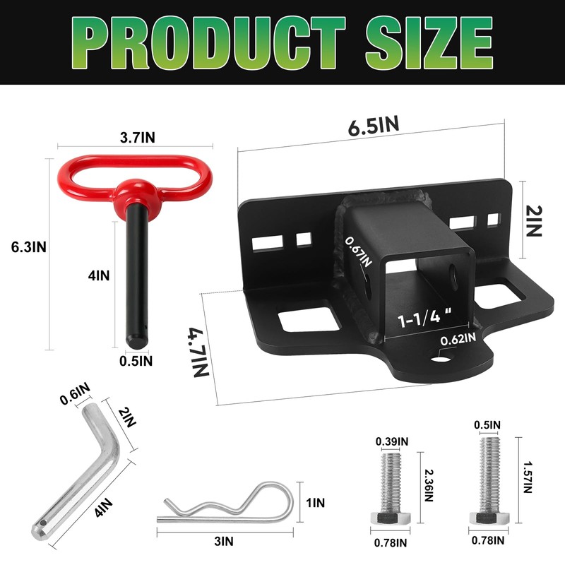 - With 1-1/4-inch receiver:This zero-turn mower hitch with 1-1/4-inch receiver is multi-purpose; designed to work with all models of mowers, tractors, trailers, and golf carts; it allows you to efficiently and quickly perform all types of mobility tasks to increase your outdoor productivity.