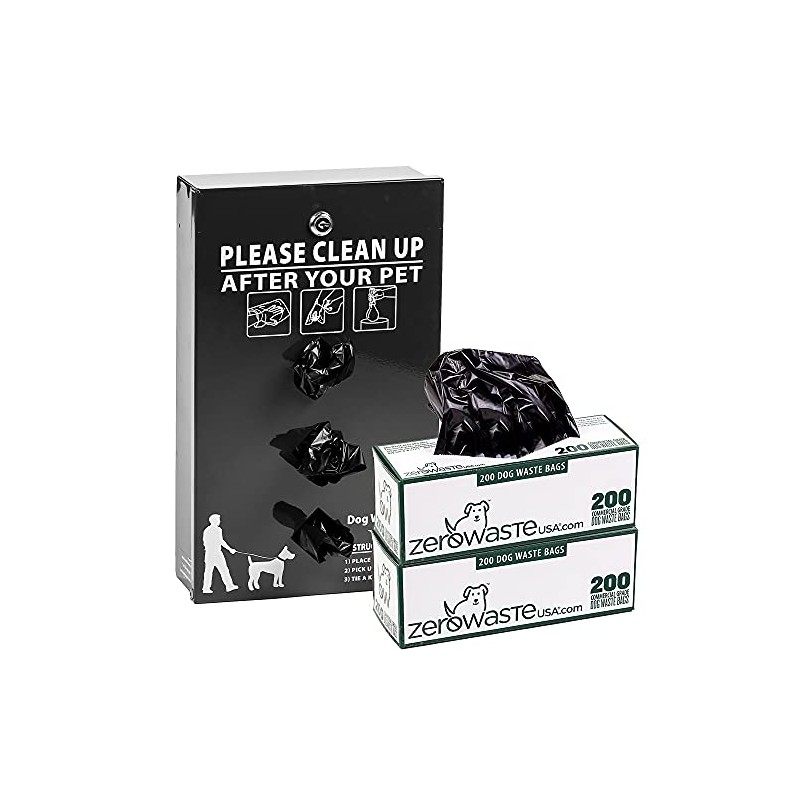 Zero Waste USA - Starter Dog Waste Station/Roll Bag System - Dog Waste Station Dispenser with 400 free dog waste bags (Matte Black)