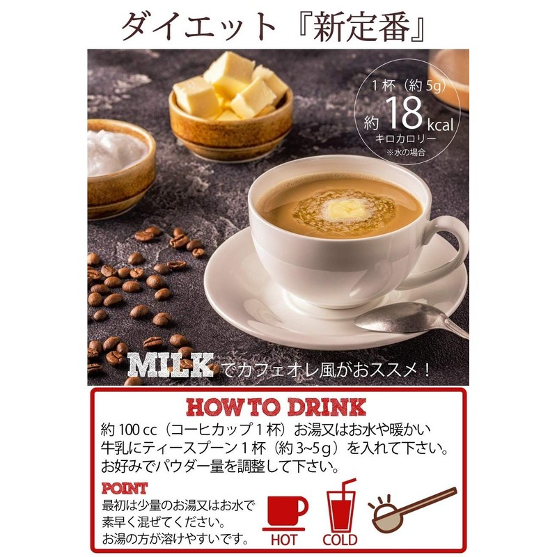 - 原材料名: インスタントコーヒー(メキシコ産)、バターパウダー、難消化性デキストリン