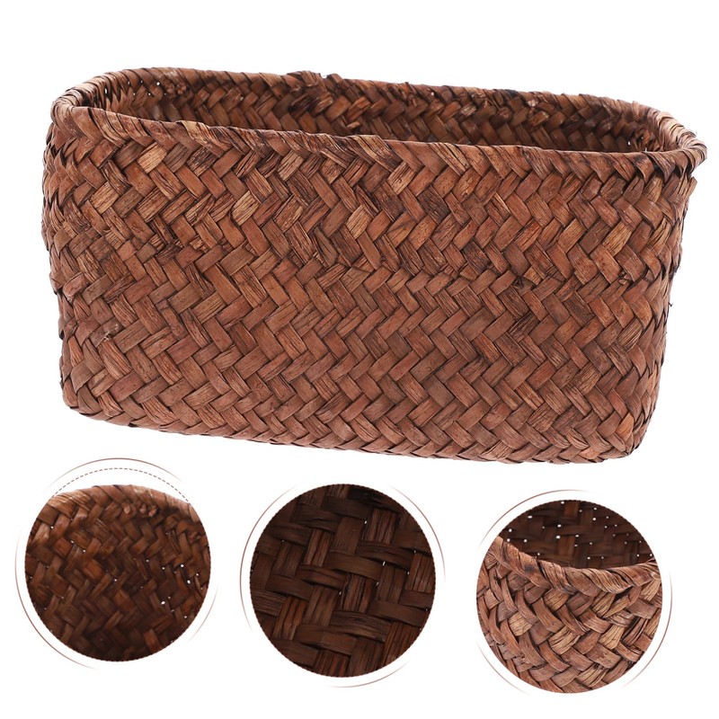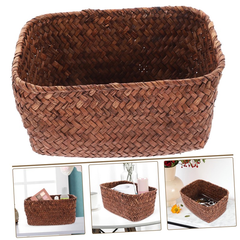 Seagrass Woven Basket Handmade Storage Basket Natural Rattan Box Handwoven Wicker Basket Decorative Shelf Wardrobe Organizer for Organizing Snack Produce