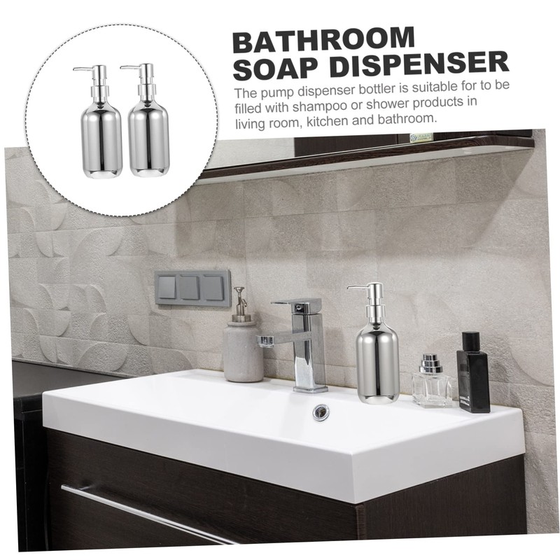 Zerodeko 2pcs Silver Pump Soap Dispenser Refillable Shampoo and Shower Gel Container for Bathroom Kitchen Use Liquid Lotion Dispenser Elegant Design
