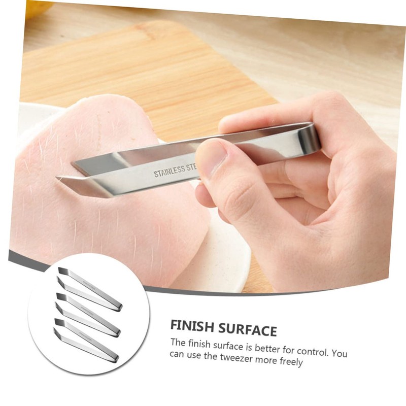 Stainless Steel Tongs Scientific design makes it easy to operate without using much strength.Food Its tip is and , so it can firmly bone or hair without cutting them off.Cooking This stainless steel tweezer is multipurpose.Precision Tweezer It is mainly used to pull out the fish bone, and it also could use as a manual hair