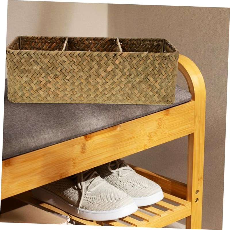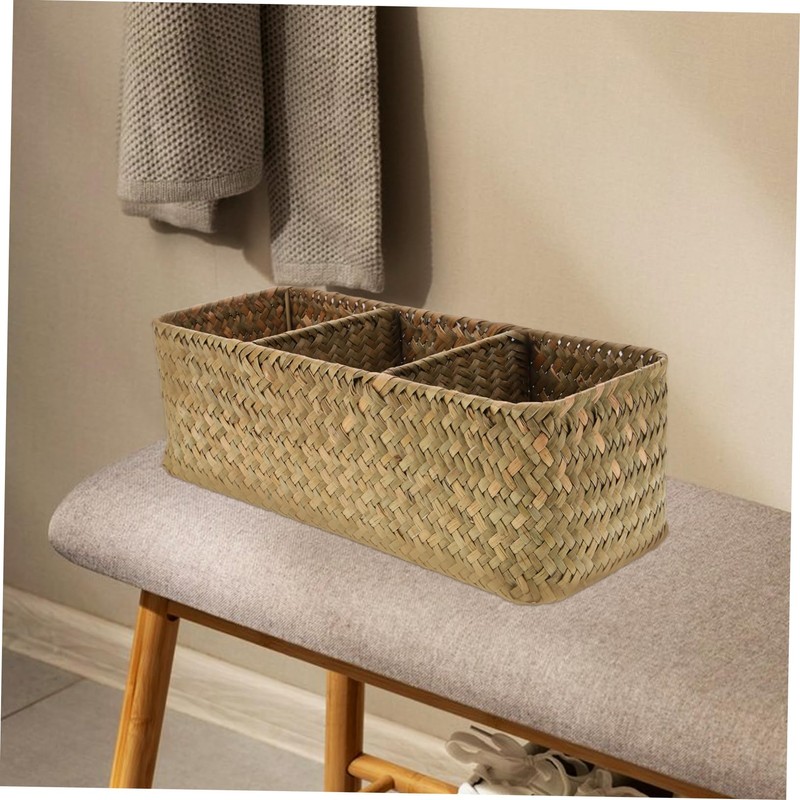Zerodeko Handwoven Storage Organizer Box Natural Three Compartment Woven Basket for Cosmetics Portable Table Basket Storage for Home Office Clutter Management