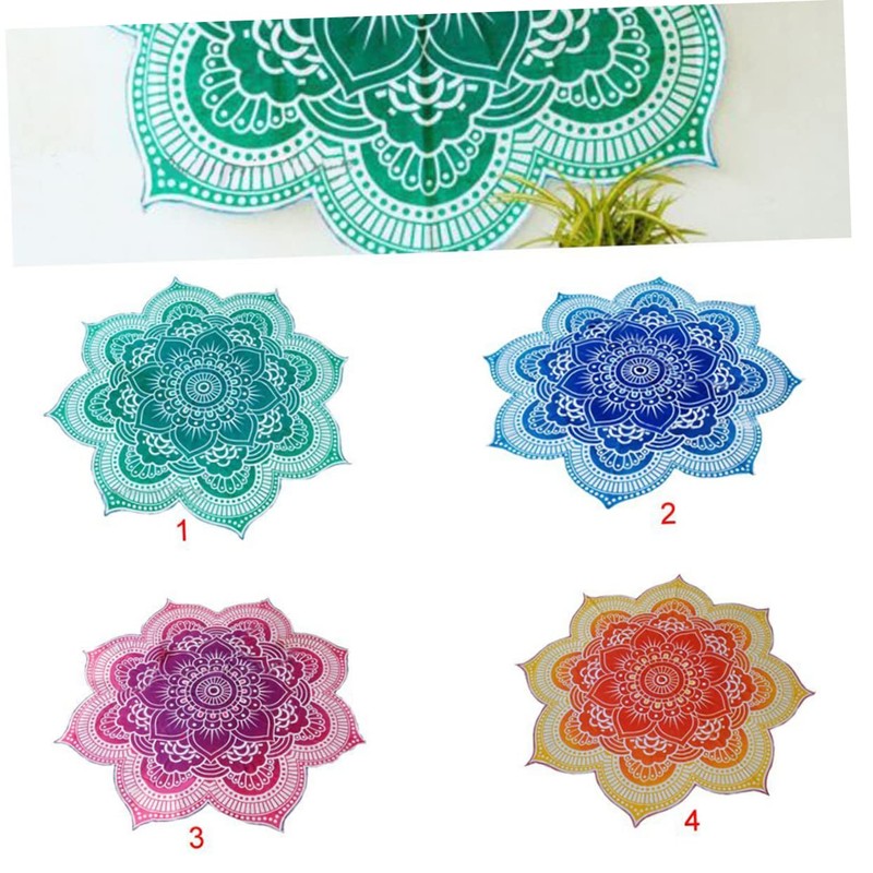 3 * Beach Towel Mandala Tapestry Lotus Shape Outdoor Throw Towel Tablecloth Hanging Yoga Mat (Green)