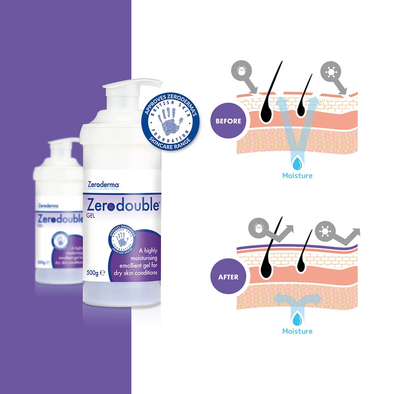 Zeroderma Zerodouble Gel, 2-in-1 Moisturiser & Soap Substitute, Highly Moisturising Gel for Dry Skin Conditions such as Eczema, Psoriasis & other Dry Skin Conditions. 500g
