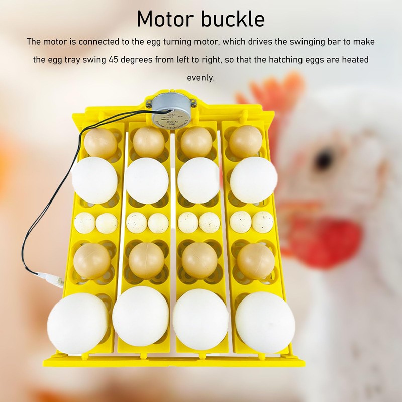 4. Motor buckle: the motor buckle is connected to the egg rotary motor. The motor drives the swivel rod to rotate, which swivels the egg tray 45 degrees left and right and the eggs are heated evenly.
