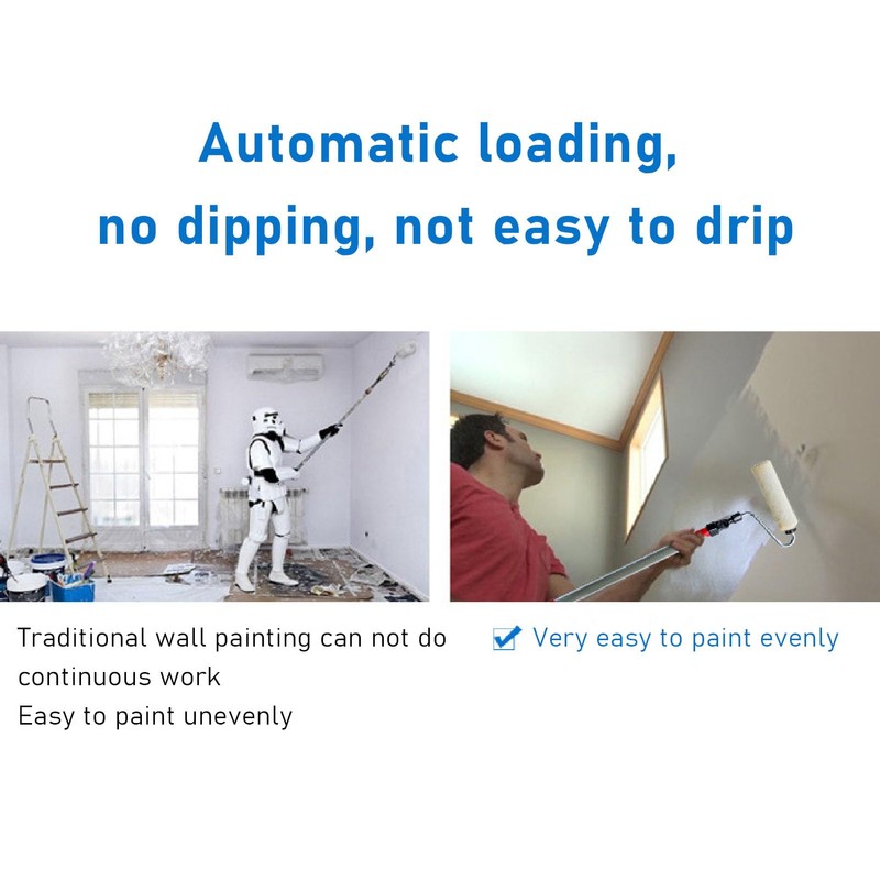 - No Need To Be Fully Armed: The automatic feeding design of the paint roller brush, no need to dip the brush, making the painting work easier and more convenient, no longer need to be fully armed.