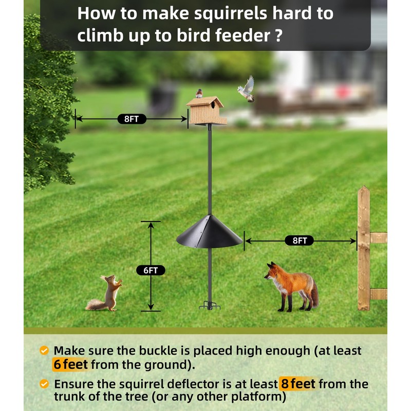 - Easy to Install - This large squirrel baffle for bird feeder pole is very easy to install, just follow the instructions and it can be installed in 10 minutes.