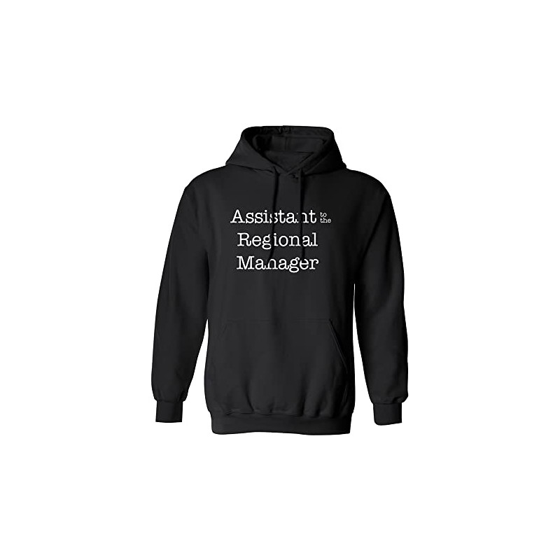 This sporty hoodie features "Assistant to the Regional Manager" on the front on an Adult Hooded Sweatshirt. Made with a comfortable blend of 50% Cotton and 50% Polyester with a double lined hood, matching drawstring and front pockets.