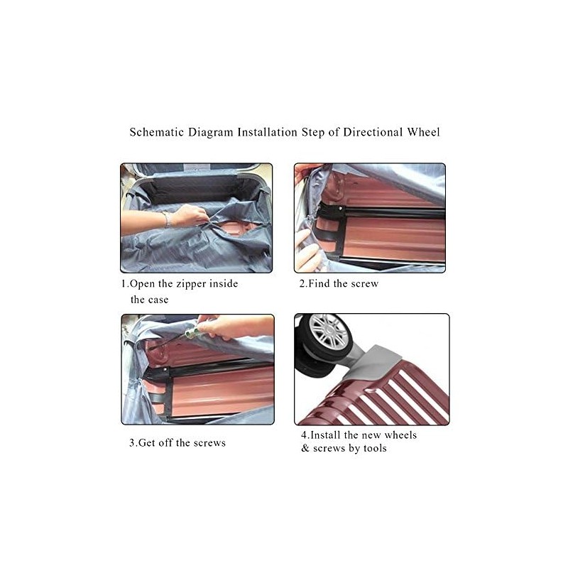 - Easy to install: each set consists of 2 spare wheels and is easy to install without a full set of mounting tools. When the wheels of the suitcase rotate, there are no loud noises, which makes travelling easy and elegant and makes the journey more enjoyable.