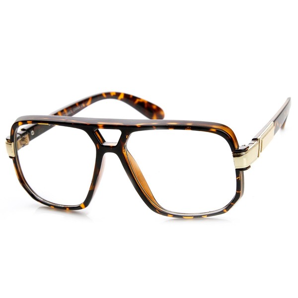 zeroUV Classic Square Frame Plastic Clear Lens Blue Light Aviator Glasses (Tortoise)