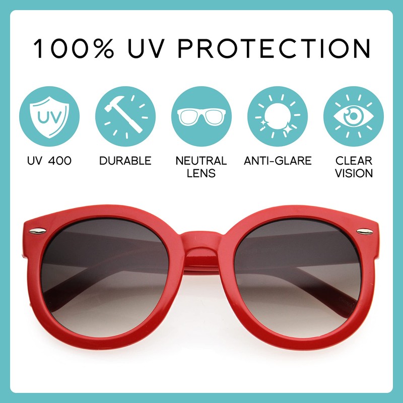 zeroUV - Womens Plastic Sunglasses Oversized Retro Style with Metal Rivets (Red/Smoke)