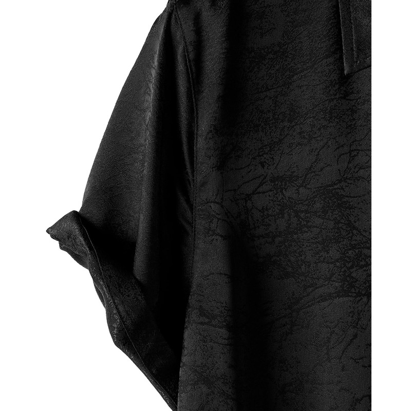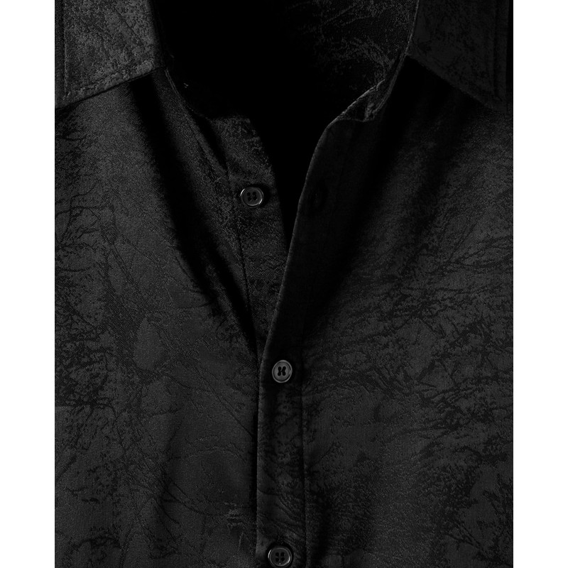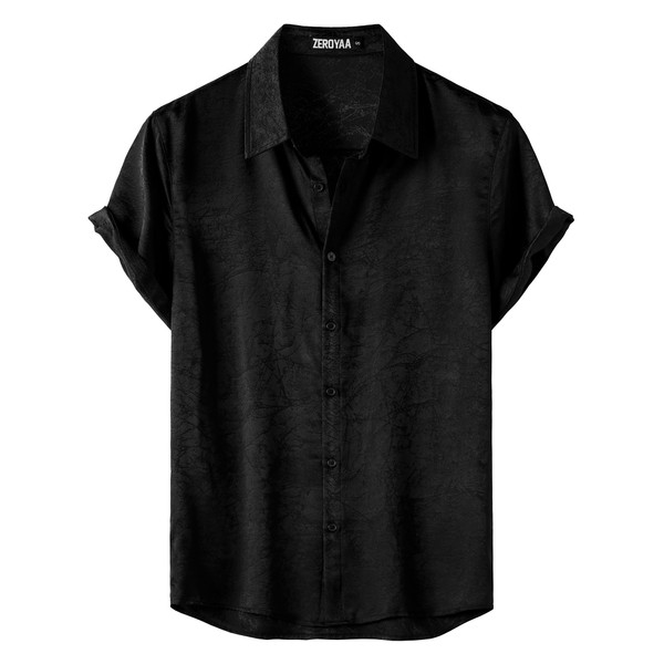 ZEROYAA Mens Summer Short-Sleeve Shirts Regular-Fit Satin Jacquard Button Down Tops for Vacation Party Black Medium