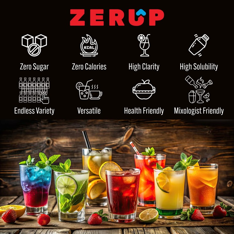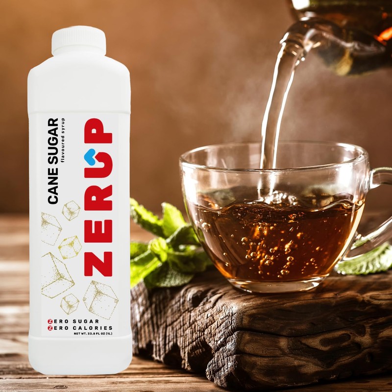 Zerup Zero Sugar Cane Sugar Syrup, Pure and Clean, Sugar-Free Syrup, Zero Calories and Sugar, Keto Friendly, Ideal for Tea, Coffee, Yogurt and more, Indulgent Taste 33.8 Oz (1L), Pack of 4