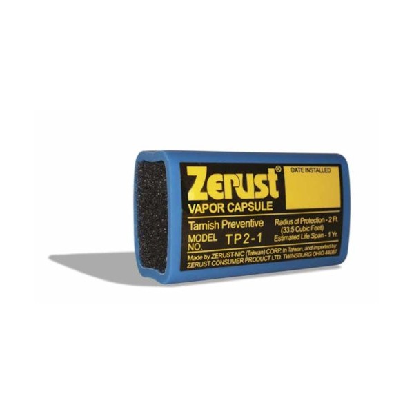 Zerust - No Tarnish vapor capsule transforms an ordinary cabinet, container, drawer, or any enclosure into an environment that protects against tarnish and corrosion. 2 Pack of capsules