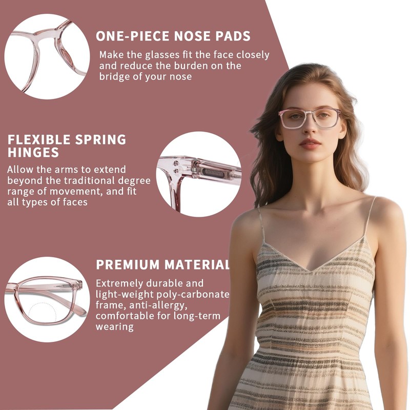 - CLASSIC LIGHTWEIGHT FRAME- Stay stylish with a modern, lightweight square- round frame with spring hinges that suits all face shapes. The trendy design offers full coverage for a chic look while providing a wider field of vision for enhanced clarity