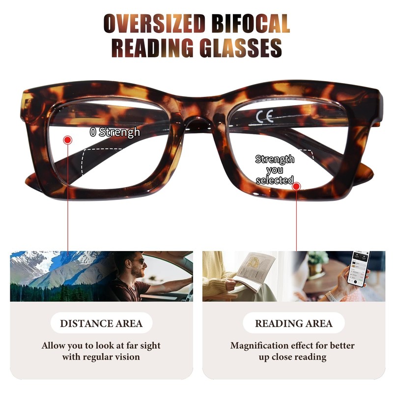 • PREMIUM MATERIAL- The bifocal reading glasses have durable frames, spring hinges, an anti-reflective lens coating, and scratch-resistant lenses. These details effectively reduce eye fatigue, headache, dizziness, insomnia, and eyestrain, further ensuring all-day comfort.