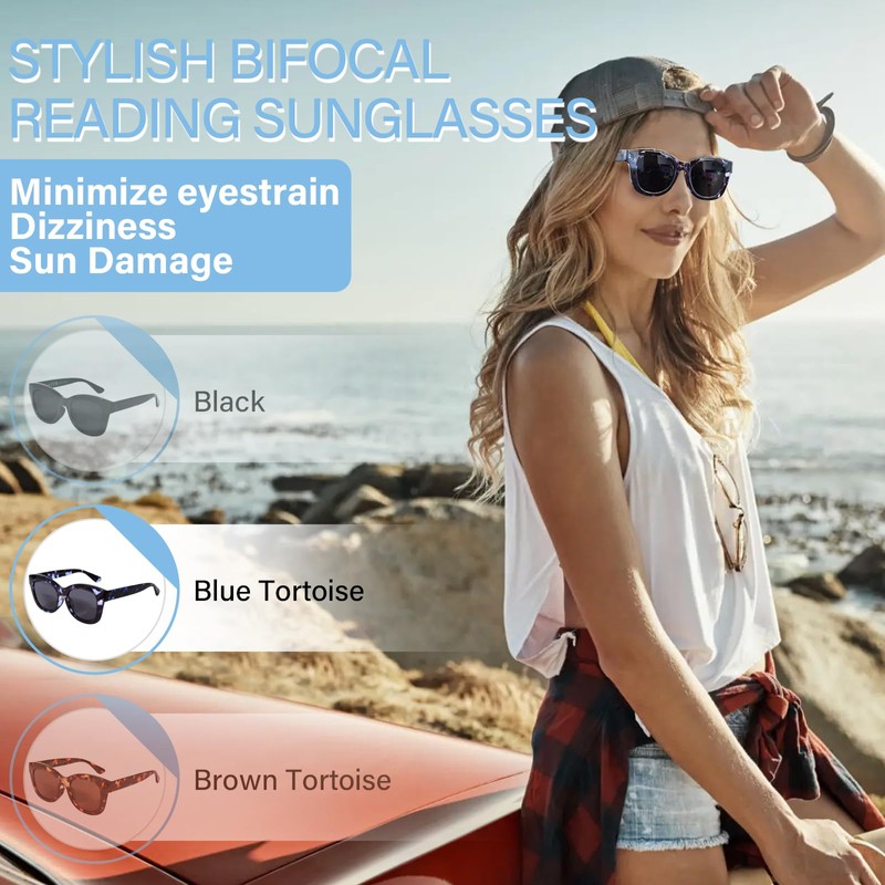 - UV400 PROTECTION READING SUNGLASSES- Enjoy unmatched clarity in the sunshine, courtesy of reader sunglasses lenses featuring bifocal magnification in the power of your choice. These lenses not only provide clear vision for reading but also offer 104% UVA/UVB protection, ensuring your eyes remain shielded from the sun's harmful rays
