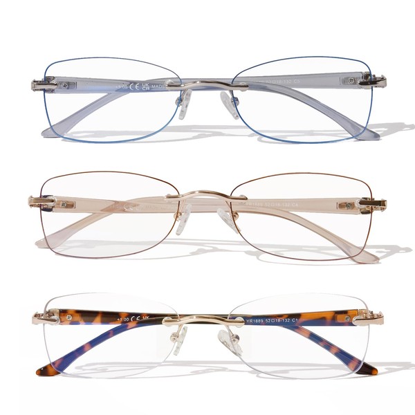 ZESAKER Rimless Reading Glasses for Women, Rectangle Blue Light Blocking Readers With Tinted Edge (Blue+ Tortoise+ Light Brown, 3.0)
