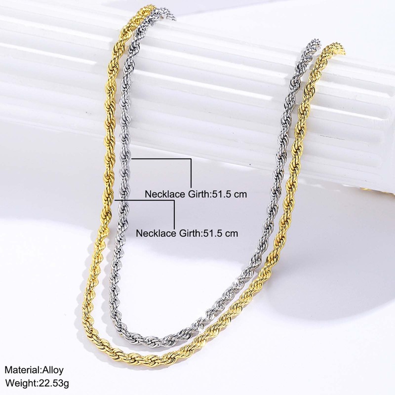 Zeshimb Rope Chain Necklace Layered Twisted Chain Choker Necklace Two Tone Gold Silver Chain Necklace Braided Rope Link Chain Necklace Hip Hop Jewelry for Women Men, Zinc, No Gemstone