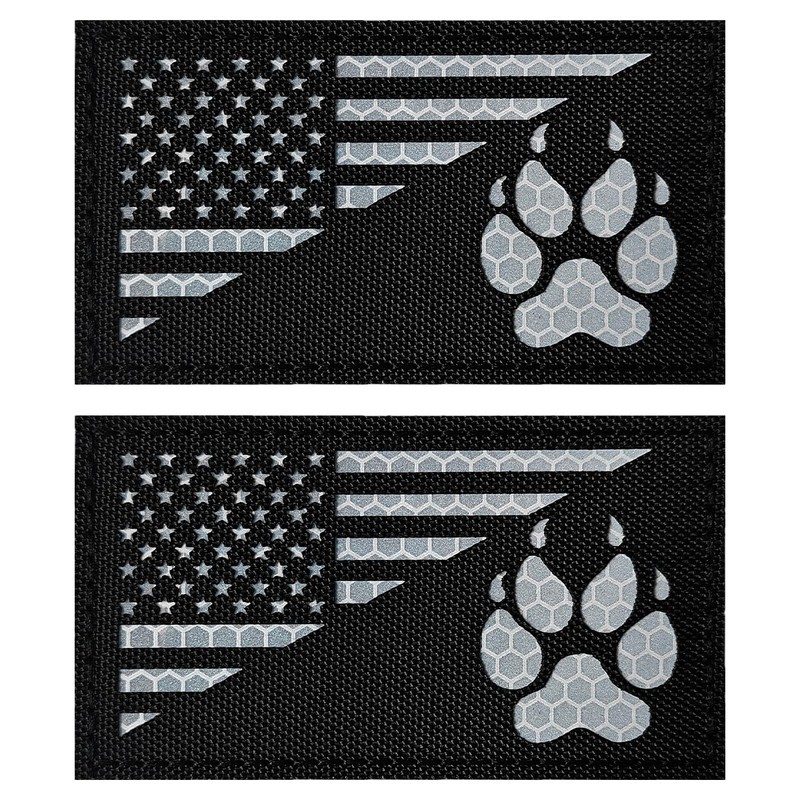 ZESION 2Pcs Reflective American Flag(with Dog Tracking Paw) Patches Set, Tactical US Flag Patches Full Embroidery Military Patch for Caps Bags Vests Military Uniform