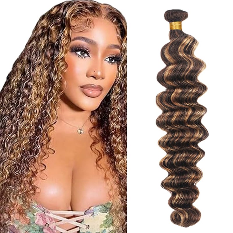 Zeslaerr P427 Highlight Brown Color Echthaar Perücke Bundles Human Hair Extensions Grade Unprocessed Virgin Menschliches Haar Deep Wave Bundles Minimal Shedding For Women 30 Inch