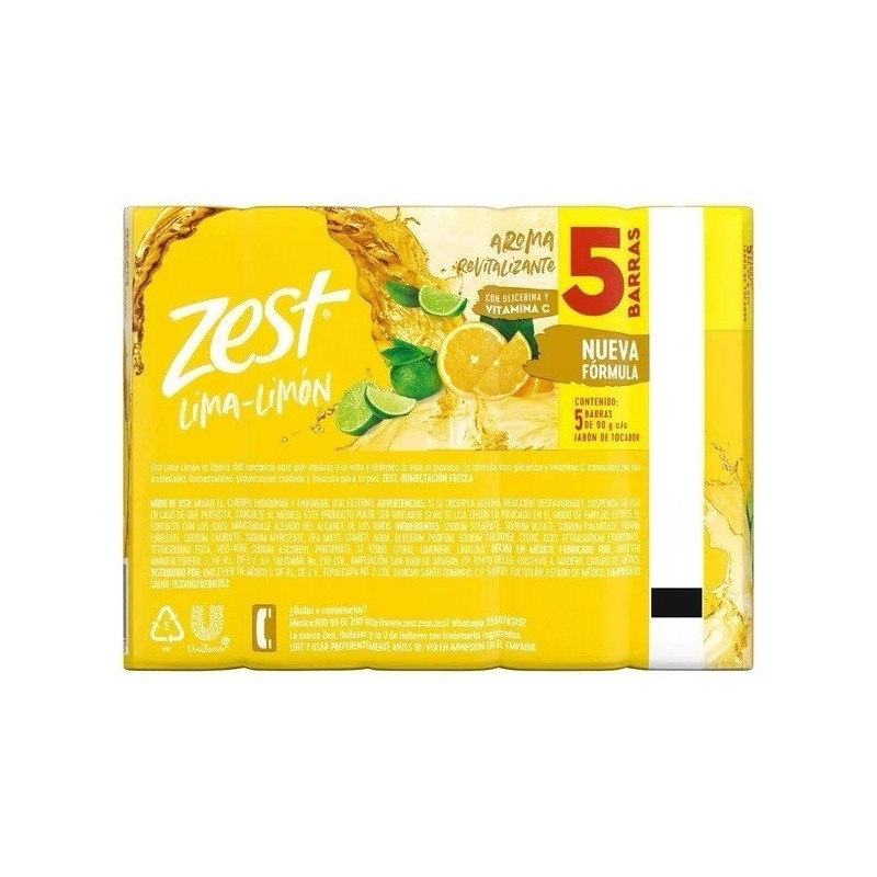 2 PAQUETES DE 5 JABONES = 10 JABONES ZEST LIMA LIMÓN (90 g c/u) - 10 ZEST BAR SOAPS (Made in 🇲🇽).