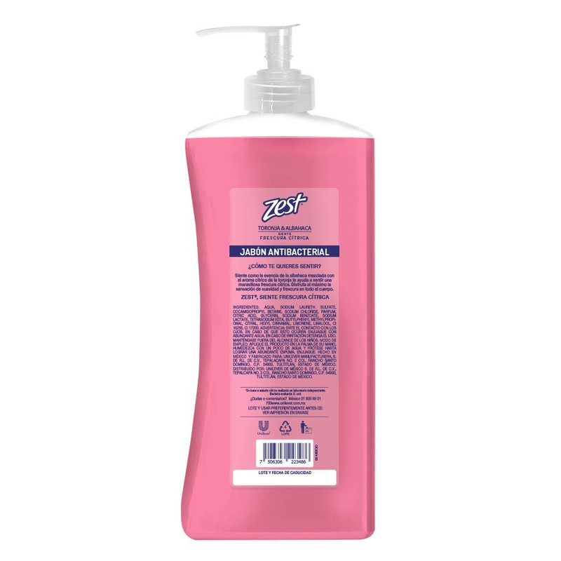 Zest Zest Jabon Liquido Para Manos Toronja y Albahaca 532Ml