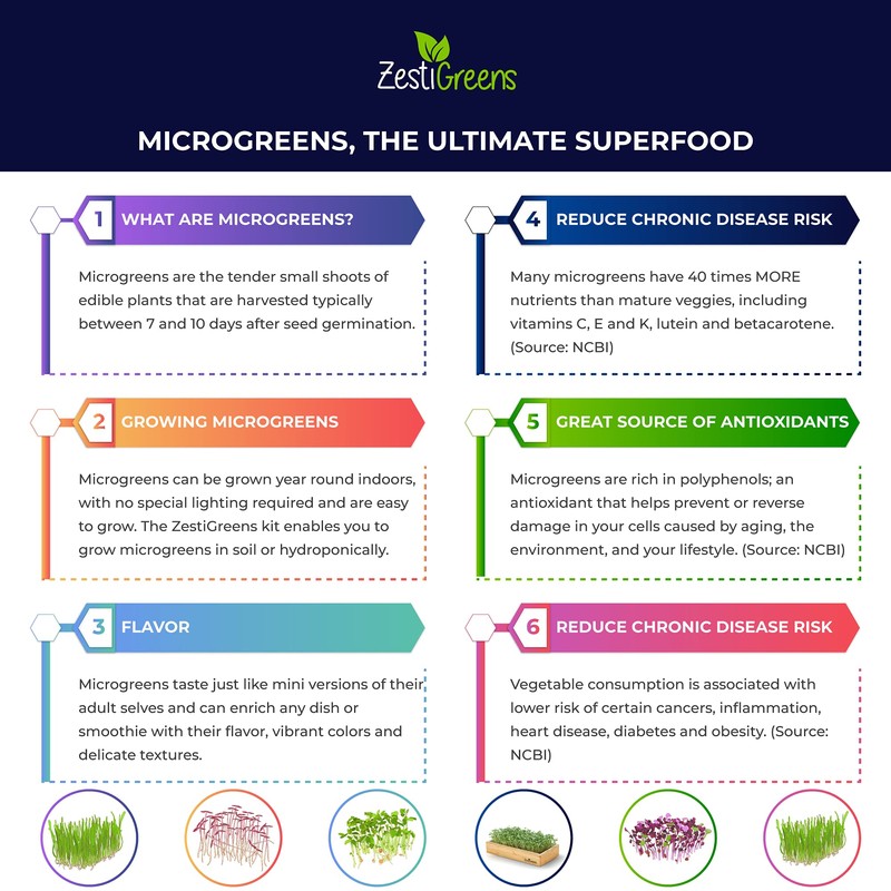 - GROW ALL VARIETIES OF MICROGREENS WITH THIS GROW KIT. Some Microgreens Seeds love growing the hydroponic way but some larger seed varieties such as sunflower, chard, buckwheat, pea, beet and cilantro microgreens grow best in soil. With the ZestiGreens Kit, you can take out the hydroponic insert and add soil instead, giving you the option to grow both ways.