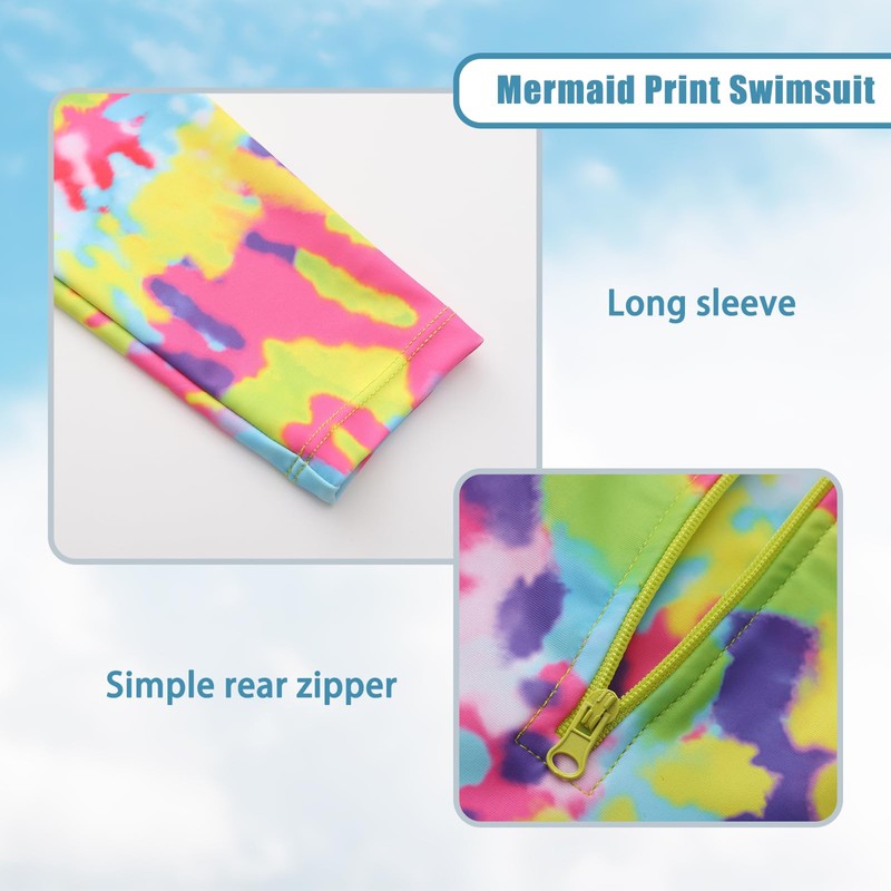- «««« With the trendy digital prints and fade-resistant bright color, this girls long sleeve bathing suit will let your girl explore and shine in the crowd freely for much more fun.