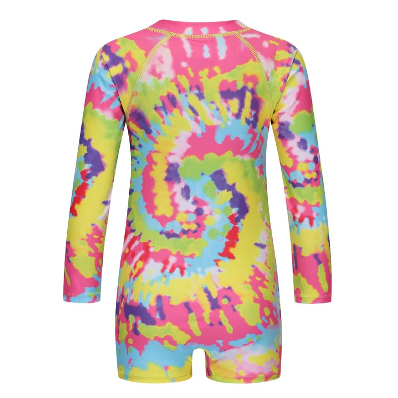 Zestonie Big Girls One Piece Rash Guard Swimsuits for Girl Long Sleeve Bathing Suits with UPF 50+ Sun Proctection Swimwear Mix Tie Dye Size 14/12-14 Years