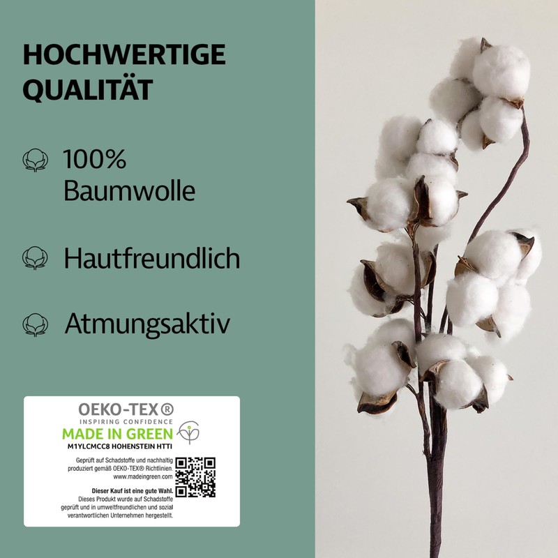 A fit-resistant, supple and skin-friendly fitted sheet is just as important as a comfortable topper. While a stitched all-round elastic band and a sanforisation of the fabric (Sanfor-Knit) ensure the durable fit, the fine mesh cotton fabric creates a comfortable surface, which is also durable and breathable.