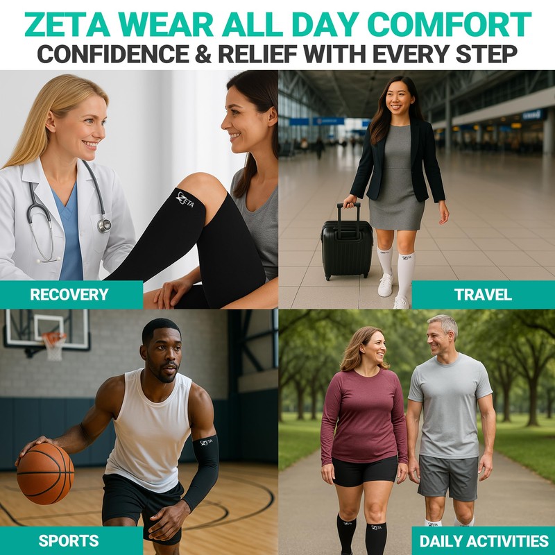 - So Versatile You'll Wear Them Everywhere: Do you sit at a desk all day? Or stand up for hours on end? Or take trips by car or plane? You'll love our shin splint compression sleeve zipper socks; They're anti-odor and anti-static, so they're perfect for nurses and office workers; Plus, they wick away moisture, so they're also ideal for the gym.