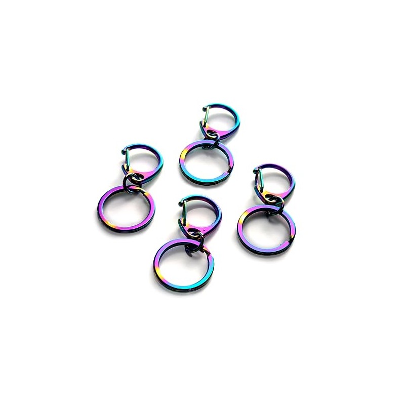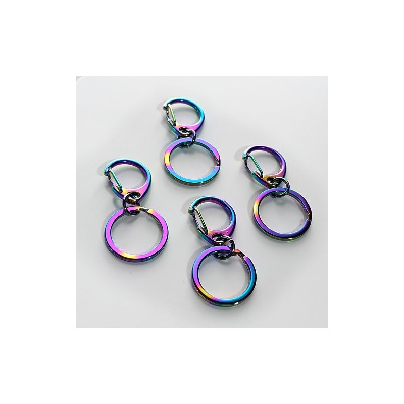 Zetali - 10 Argollas para llavero Tornasol con gancho perico (25mm)