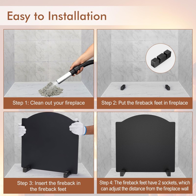 - [Easy to Use] Just place the fireback support of the fireback inside the fireplace, place the fire back on the bottom corner, and you can start using it.