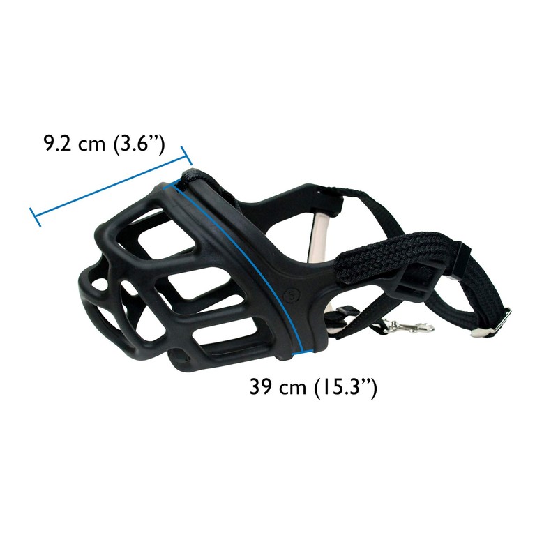 - Integrated Safety Hook: loops through dog's collar, ensures muzzle stays in place